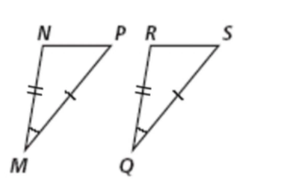 The markings indicate two sides and a non-included angle (SSA), which is not a valid triangle congruence postulate.