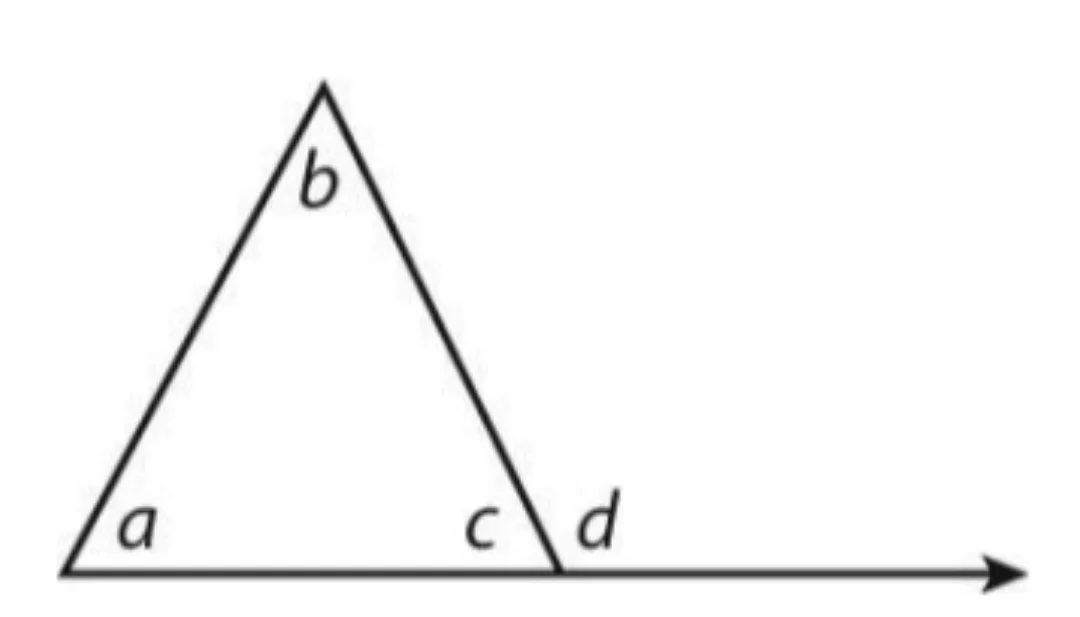 Based on the exterior angle theorem, the measure of an exterior angle (d) is equal to the sum of the measures of its two remote interior angles (a and b).