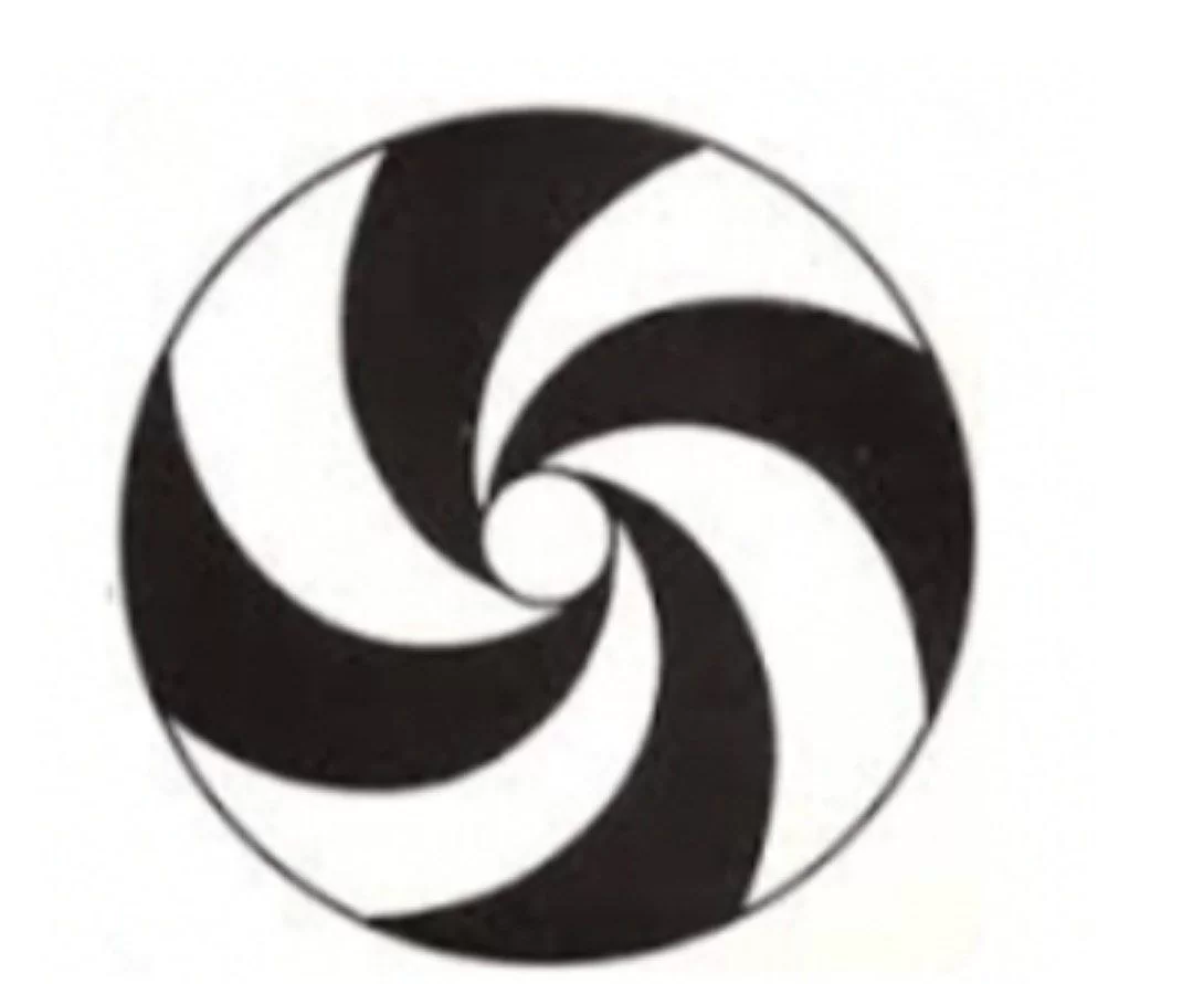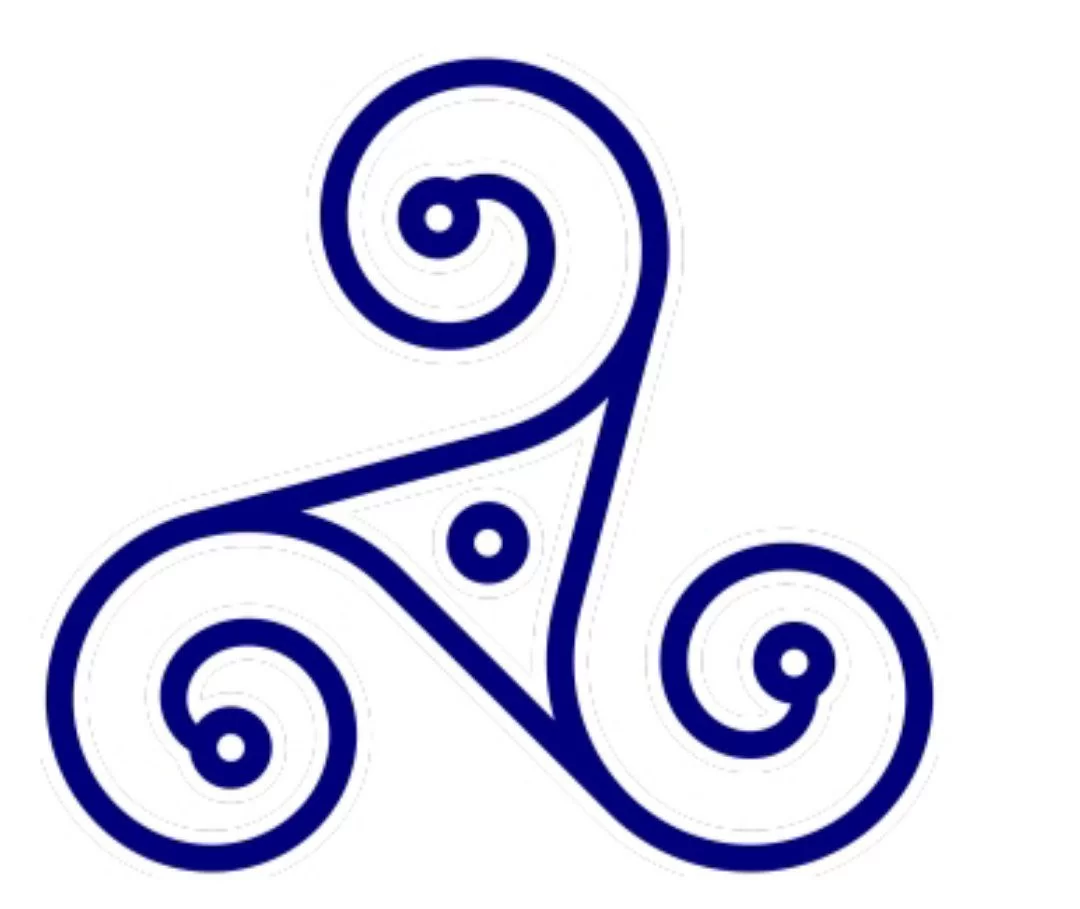 The triskelion shape has order 3 rotational symmetry, so the angle is \(360^{\circ} / 3 = 120^{\circ}\).