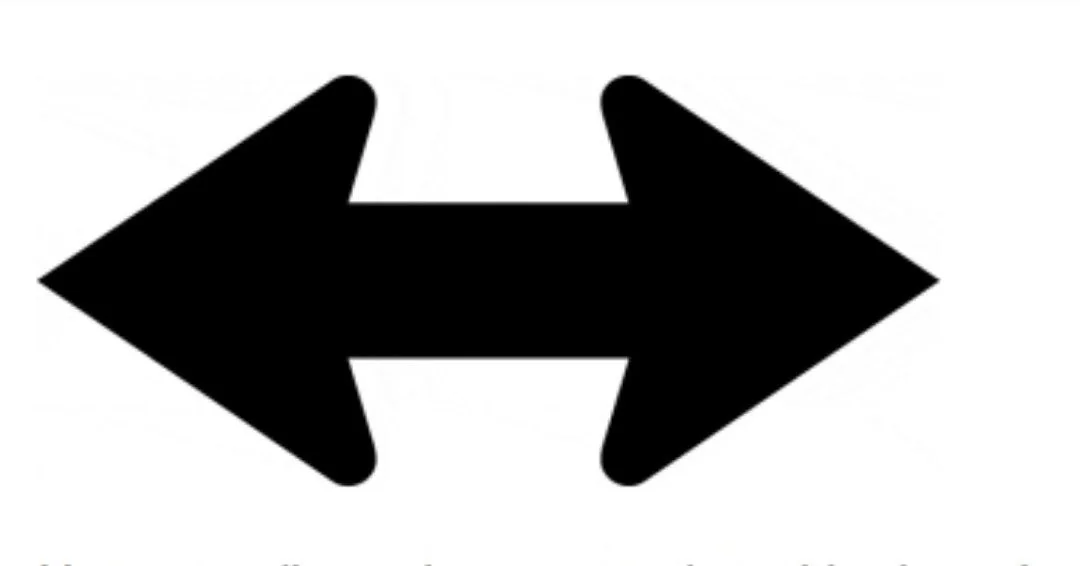 The horizontal double-headed arrow has two lines of symmetry: one horizontal line passing through the points and one vertical line bisecting the shaft.