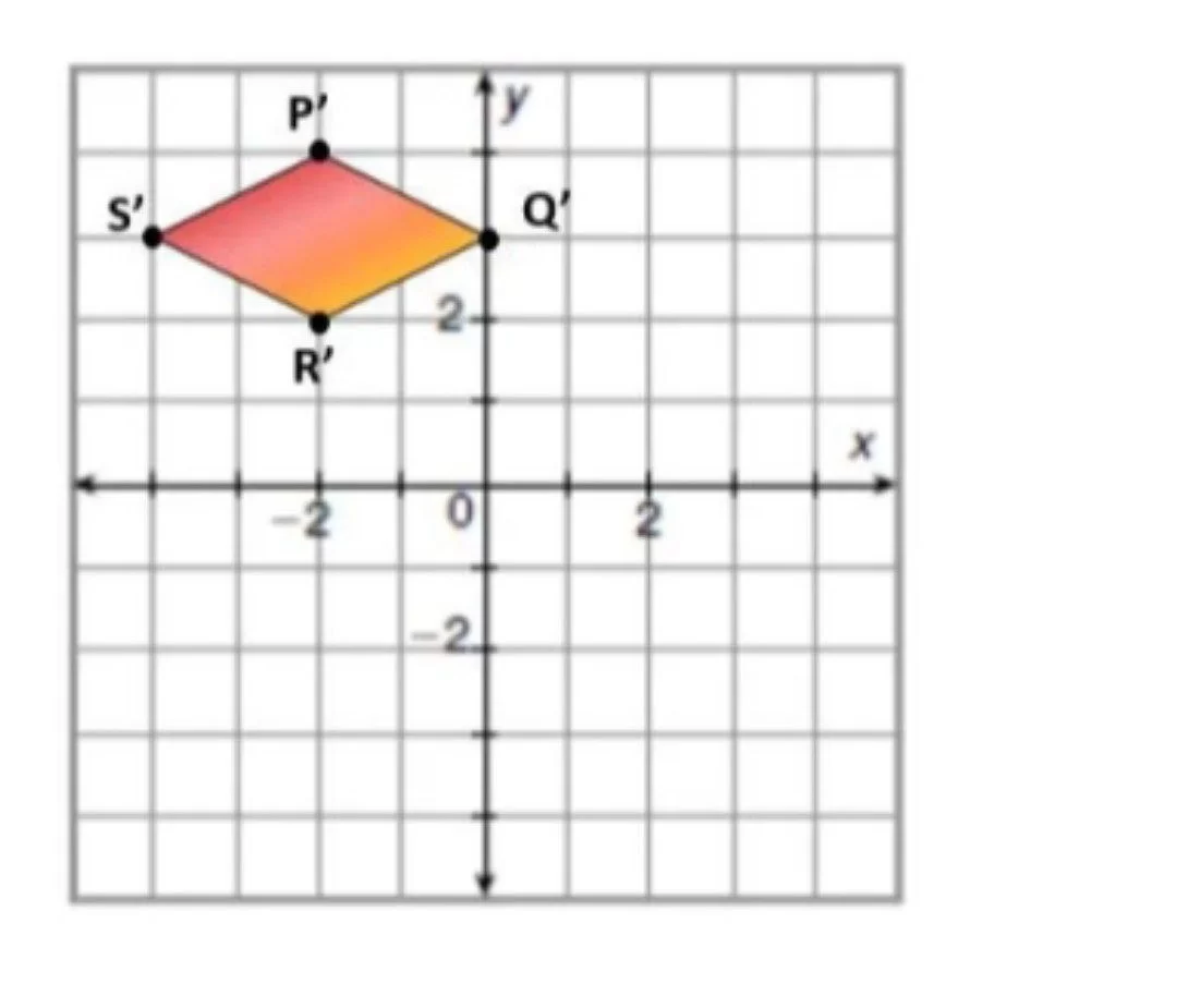 Given the parallelogram PQRS with points P(-2, 4), Q(0, 3), R(-2, 2), and S(-4, 3), which graph correctly shows parallelogram P'Q'R'S' after a 180° clockwise rotation?