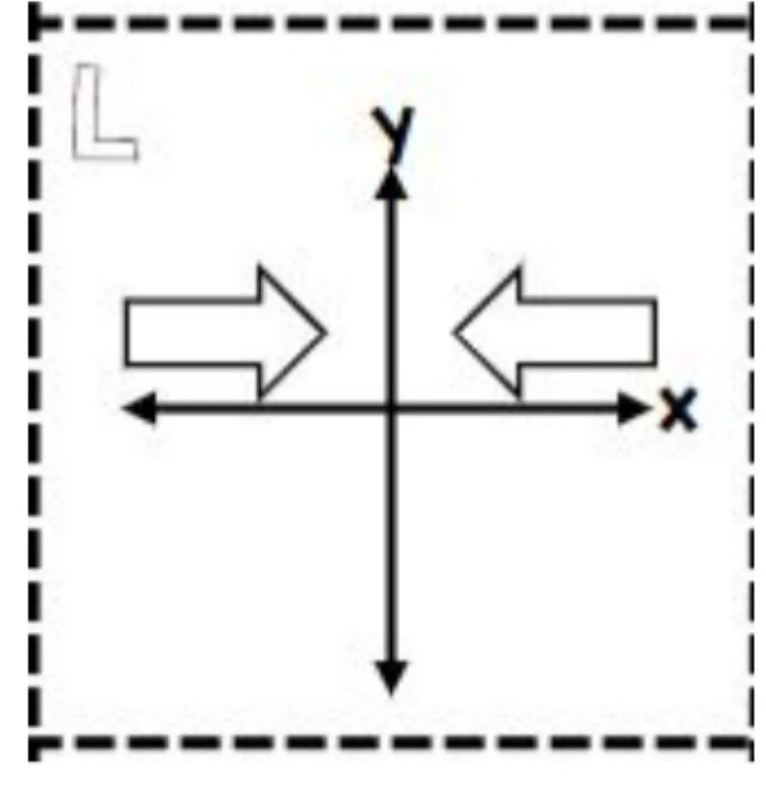 The diagram shows a horizontal flip of an arrow across the vertical axis (y-axis).