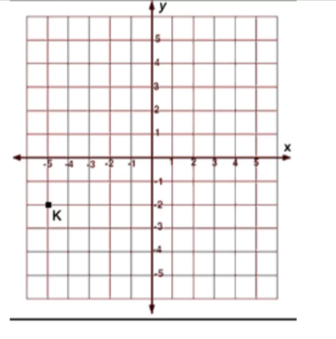 Point K is shown at (-5, -2) on the grid. Reflecting it over the y-axis changes the x-coordinate to its opposite, resulting in (5, -2).