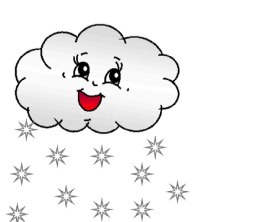 The image shows a cloud with snowflakes falling, indicating snowy weather.