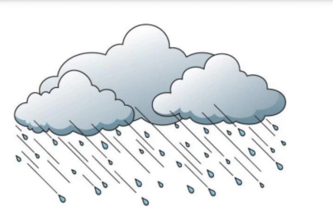 The image shows a dark cloud with raindrops falling, which is characteristic of rainy weather.