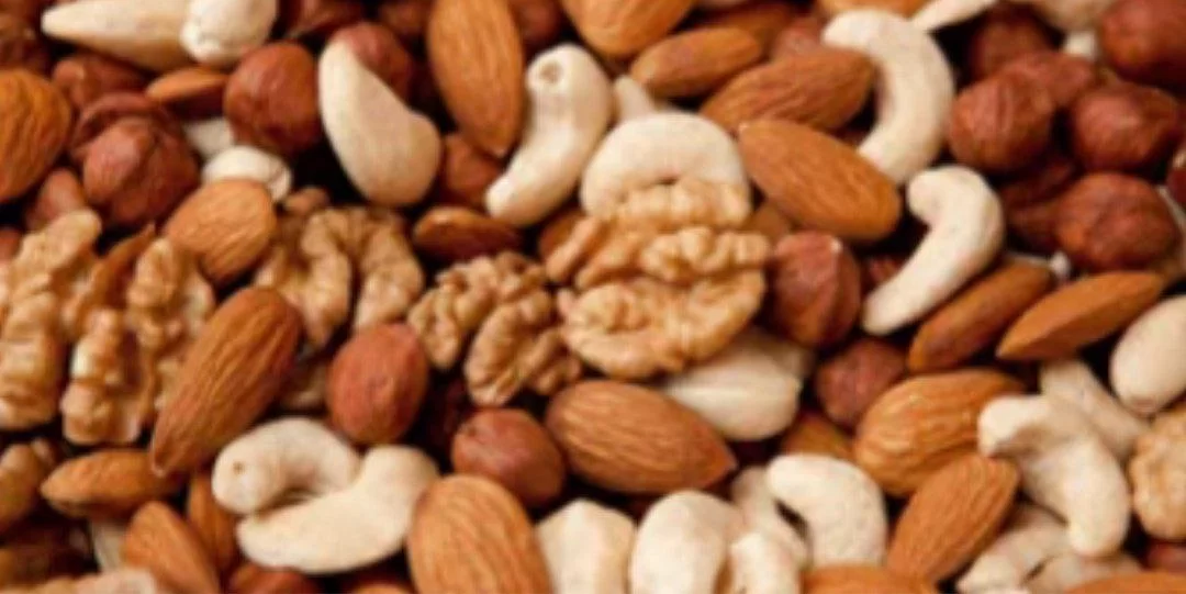 الصورة تظهر مجموعة من المكسرات المتنوعة، وهي مخلوط غير متجانس يمكن تمييز مكوناته وفصلها.