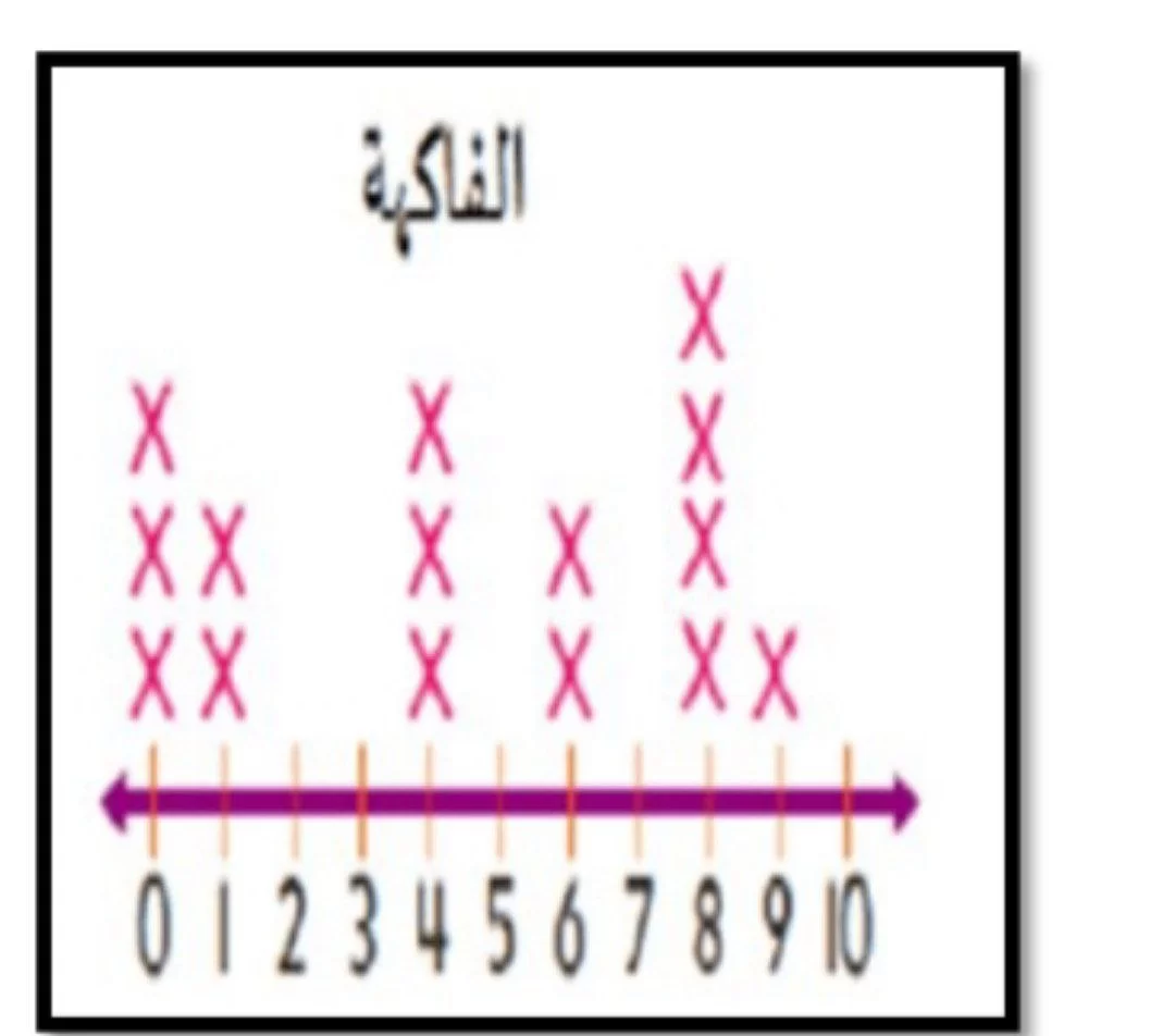 يوجد 3 علامات X عند الرقم 8، بينما لا توجد أي علامة عند الرقم 9. الفرق هو 3 - 0 = 3.