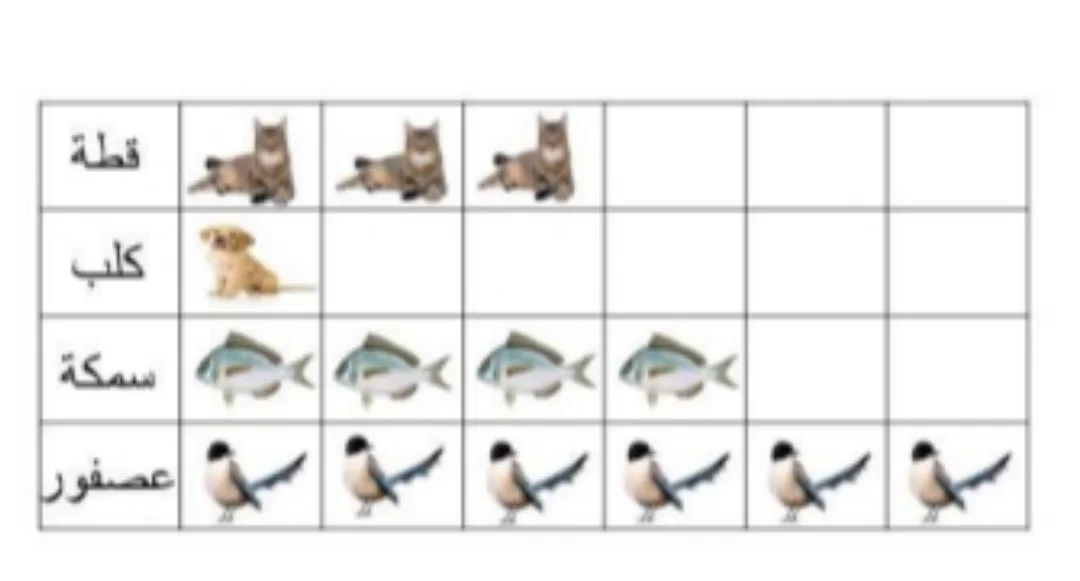 بالنظر إلى التمثيل البياني بالصور، نجد 6 صور للعصافير و3 صور للقطط. الزيادة هي 6 - 3 = 3.