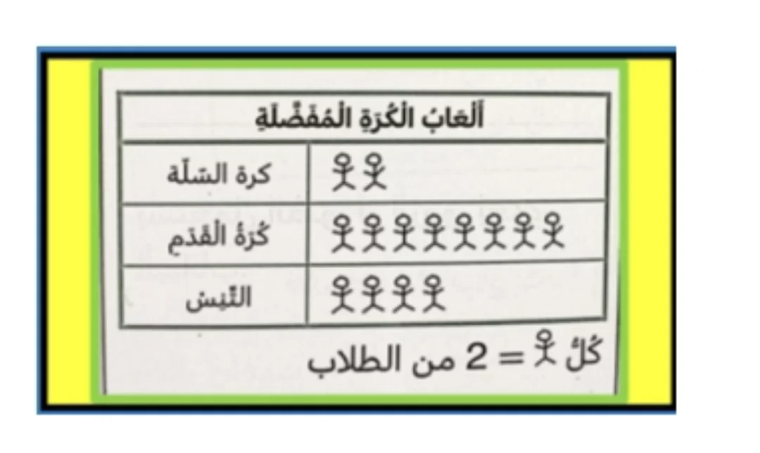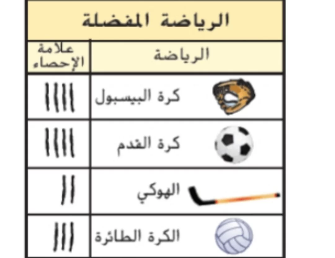 بناءً على جدول التكرار البياني بالصور، توجد 4 صور بجانب كرة البيسبول، مما يعني أن 4 أشخاص اختاروها.