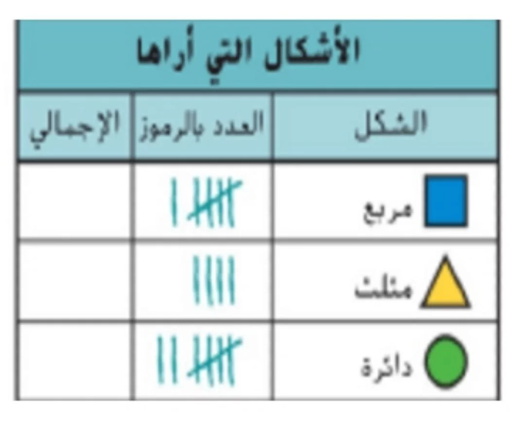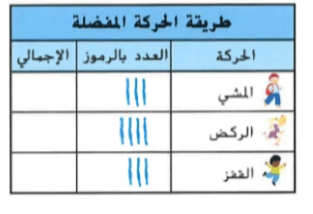 يسمى هذا الجدول 'جدول العلامات' لأنه يعتمد على العلامات الرأسية (التلي) لتسجيل البيانات.