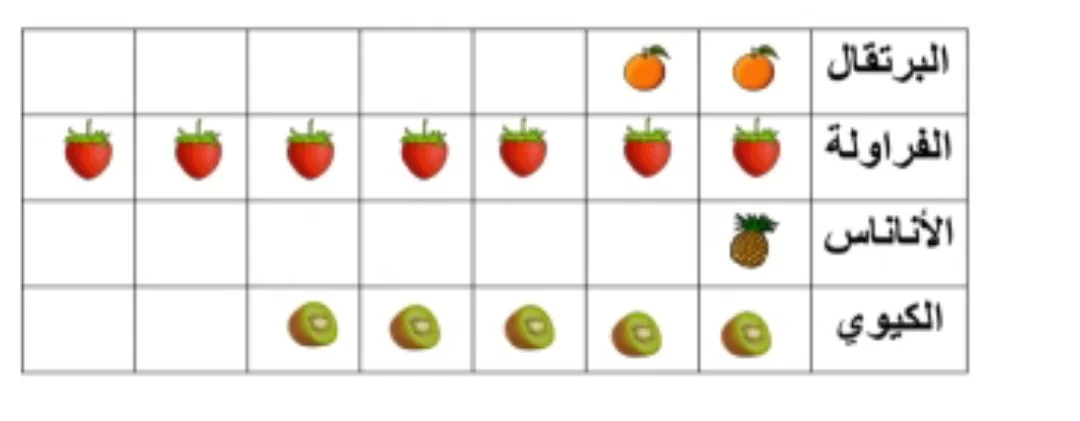 عند عد صور الفراولة في التمثيل البياني نجد أن عددها 7 صور.
