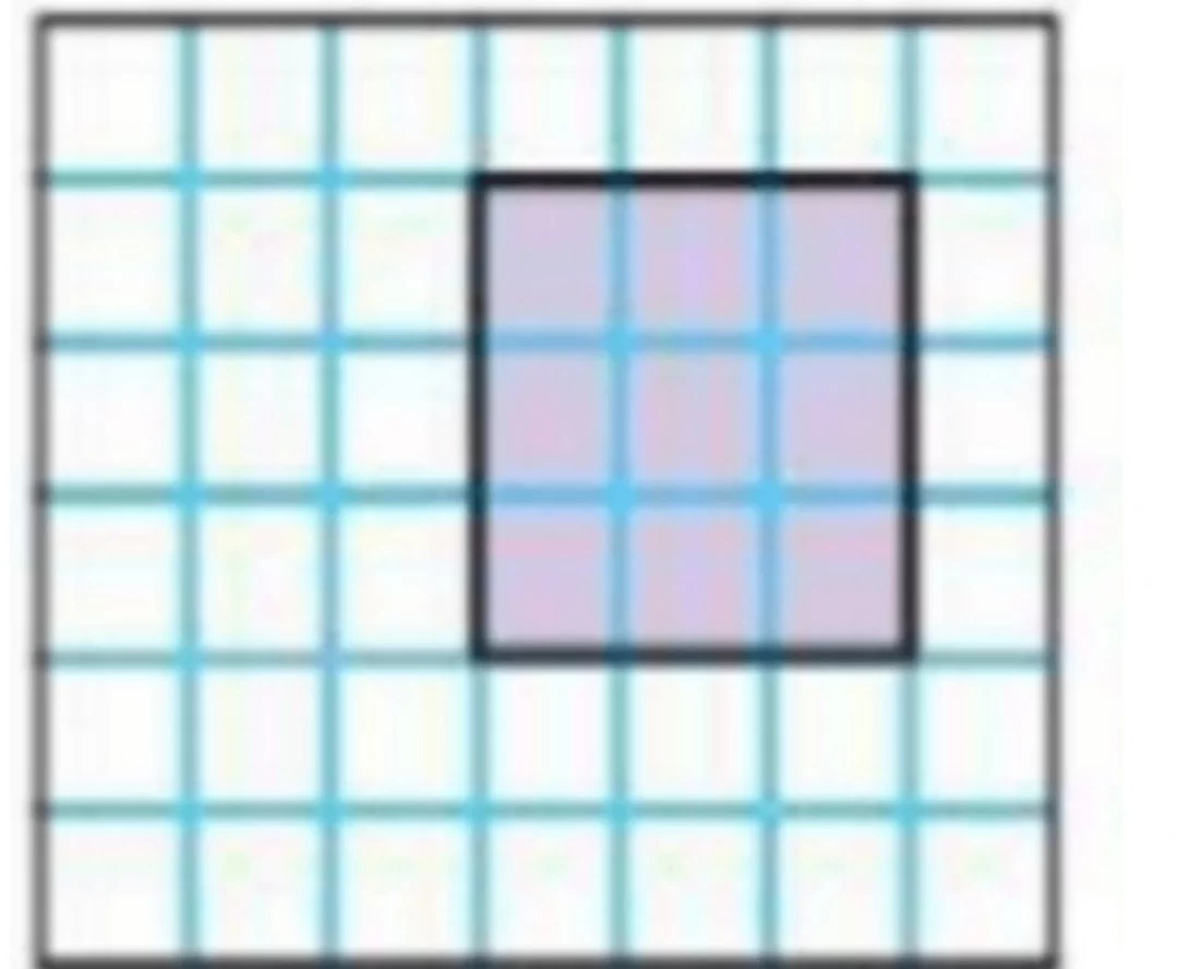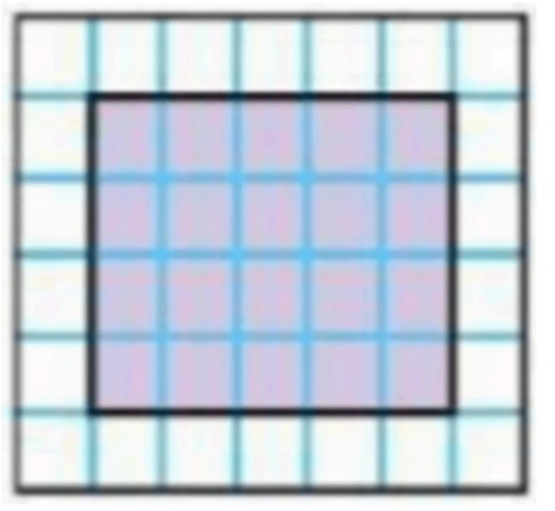 الشكل الموضح يمثل شبكة مربعة كاملة مكونة من 5 أعمدة و 5 صفوف، لذا المساحة الكلية للشكل هي \(5 \times 5 = 25\).