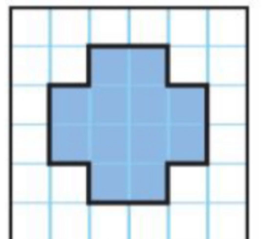 من خلال عد الوحدات المربعة المكونة لهذا الشكل، نجد أن الجزء الأوسط يتكون من 8 مربعات والأجزاء الجانبية تتكون من 4 مربعات إضافية، ليكون المجموع الكلي 12 وحدة مربعة.