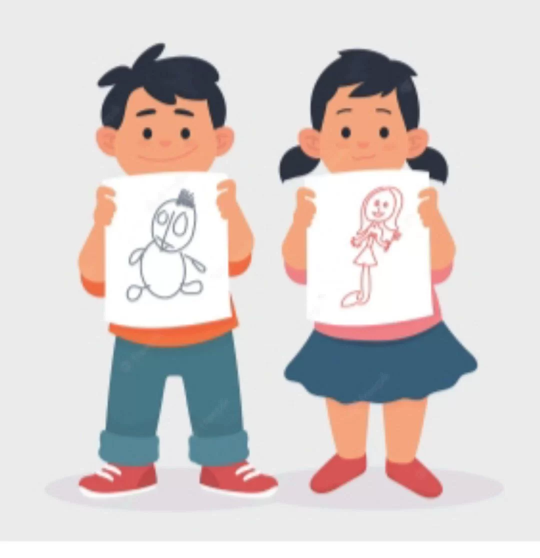 According to the image and 'yesterday', 'showed' is the correct past simple verb describing presenting drawings.