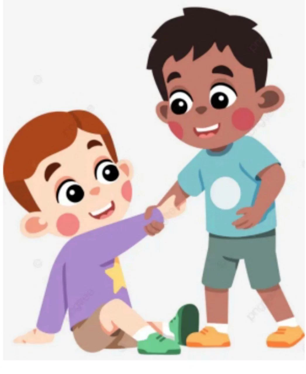The image shows an act of helping. The past simple form for 'yesterday' is 'helped'.