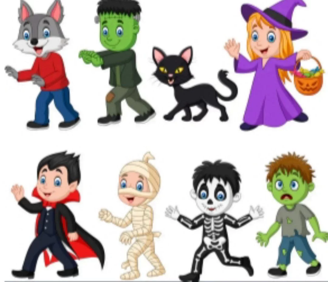 The image shows people in costumes, which corresponds to the past phrase 'dressed up'.