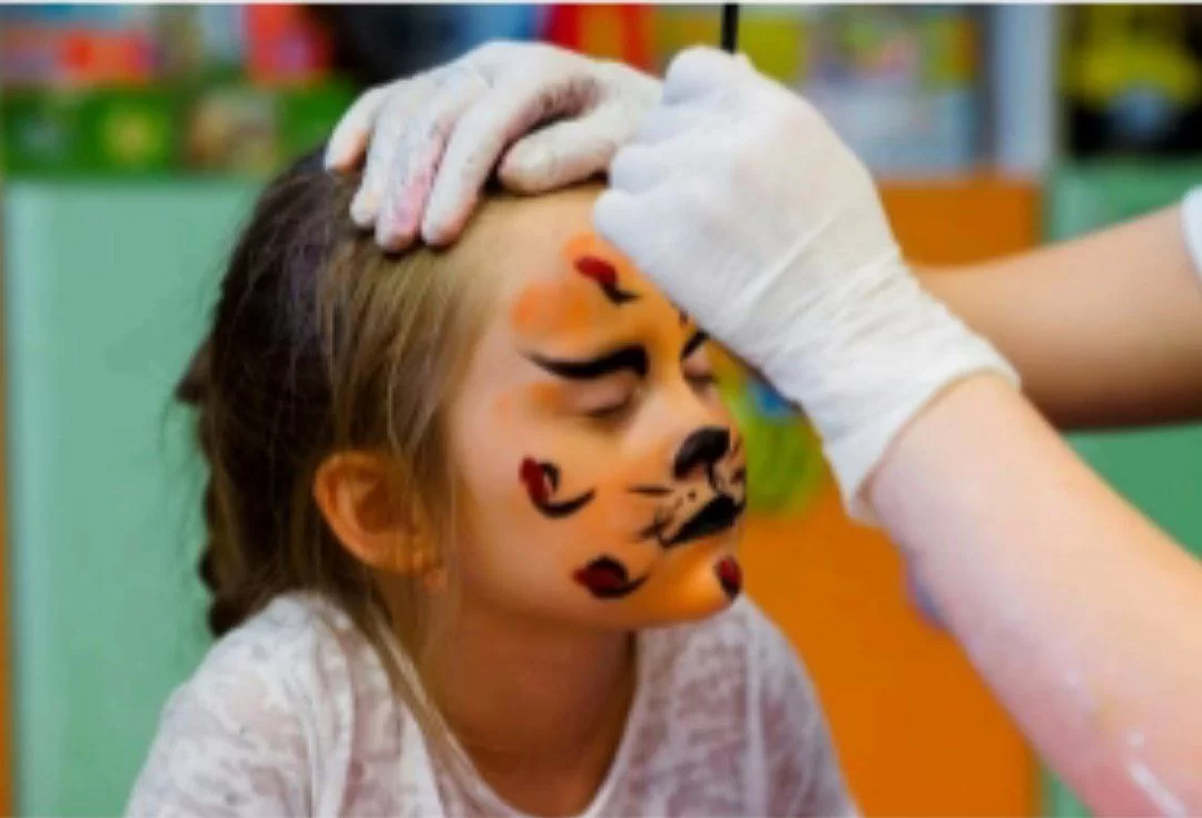 The image shows a face painting activity. 'My father painted my face' is the only option that matches the visual context.