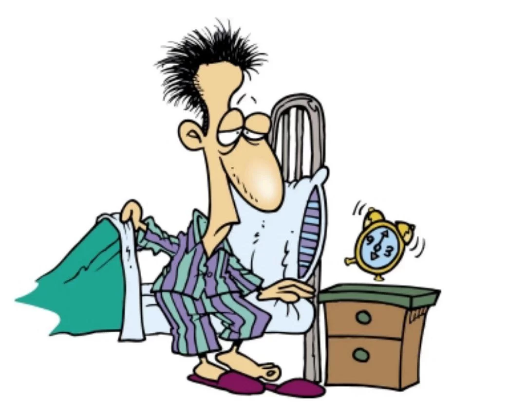 The image depicts a boy waking up and getting out of bed, which matches the phrase 'He gets up'.