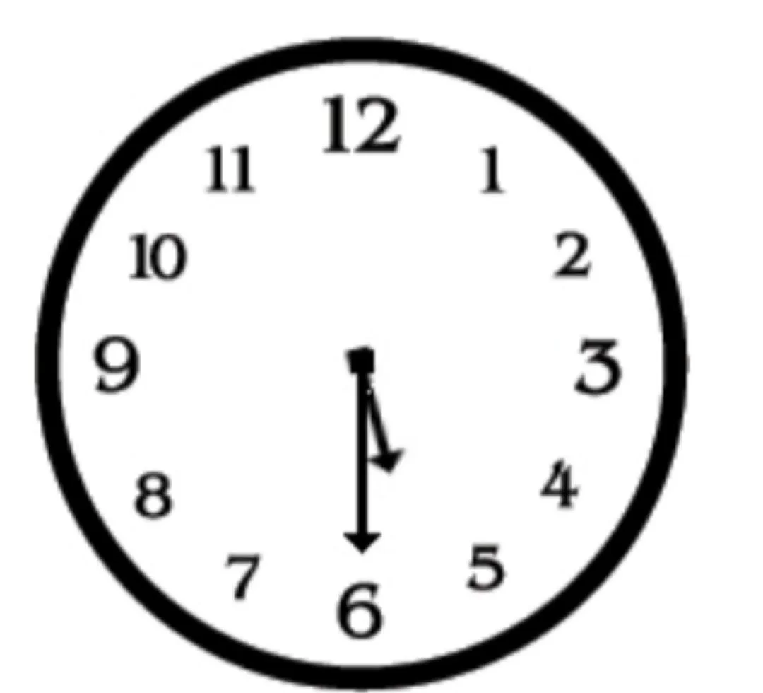 The clock shows the hour hand between 5 and 6 and the minute hand at 6, which represents 5:30 or 'half past five'.