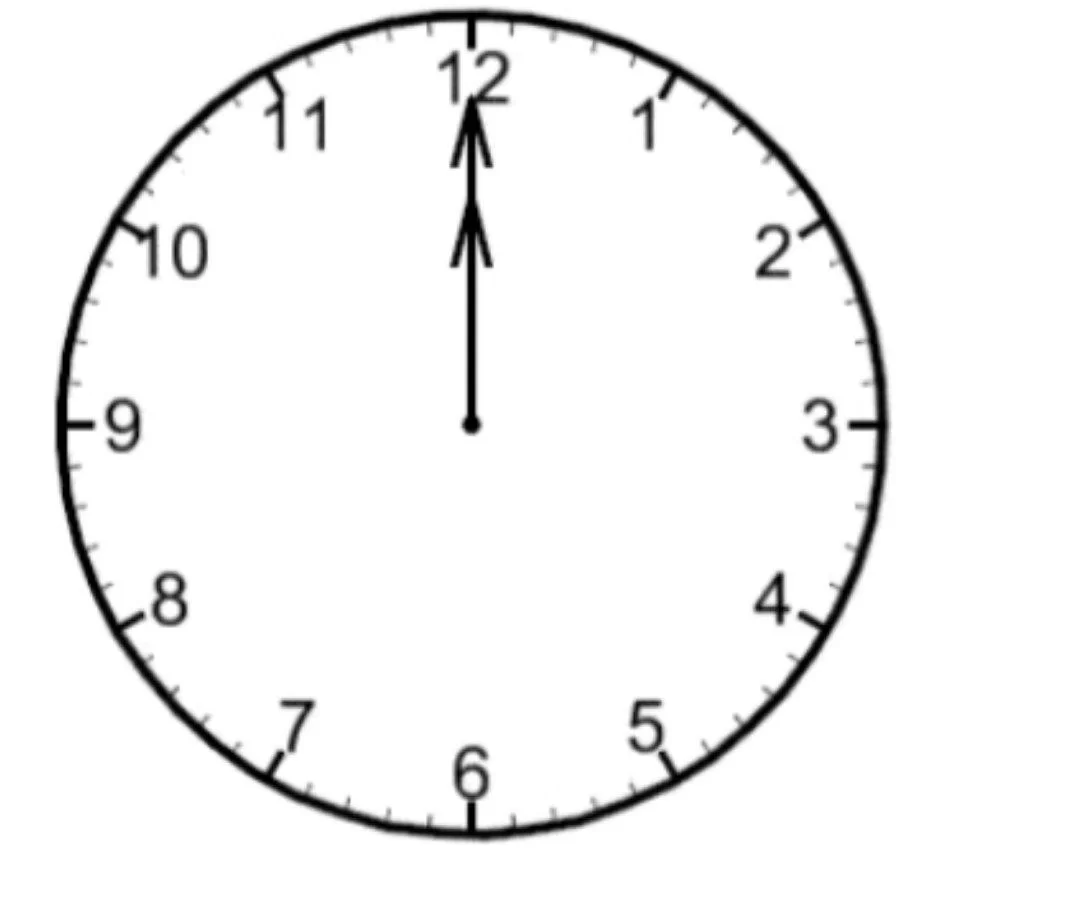 The clock shows both the hour and minute hands pointing to 12, indicating it is twelve o'clock.