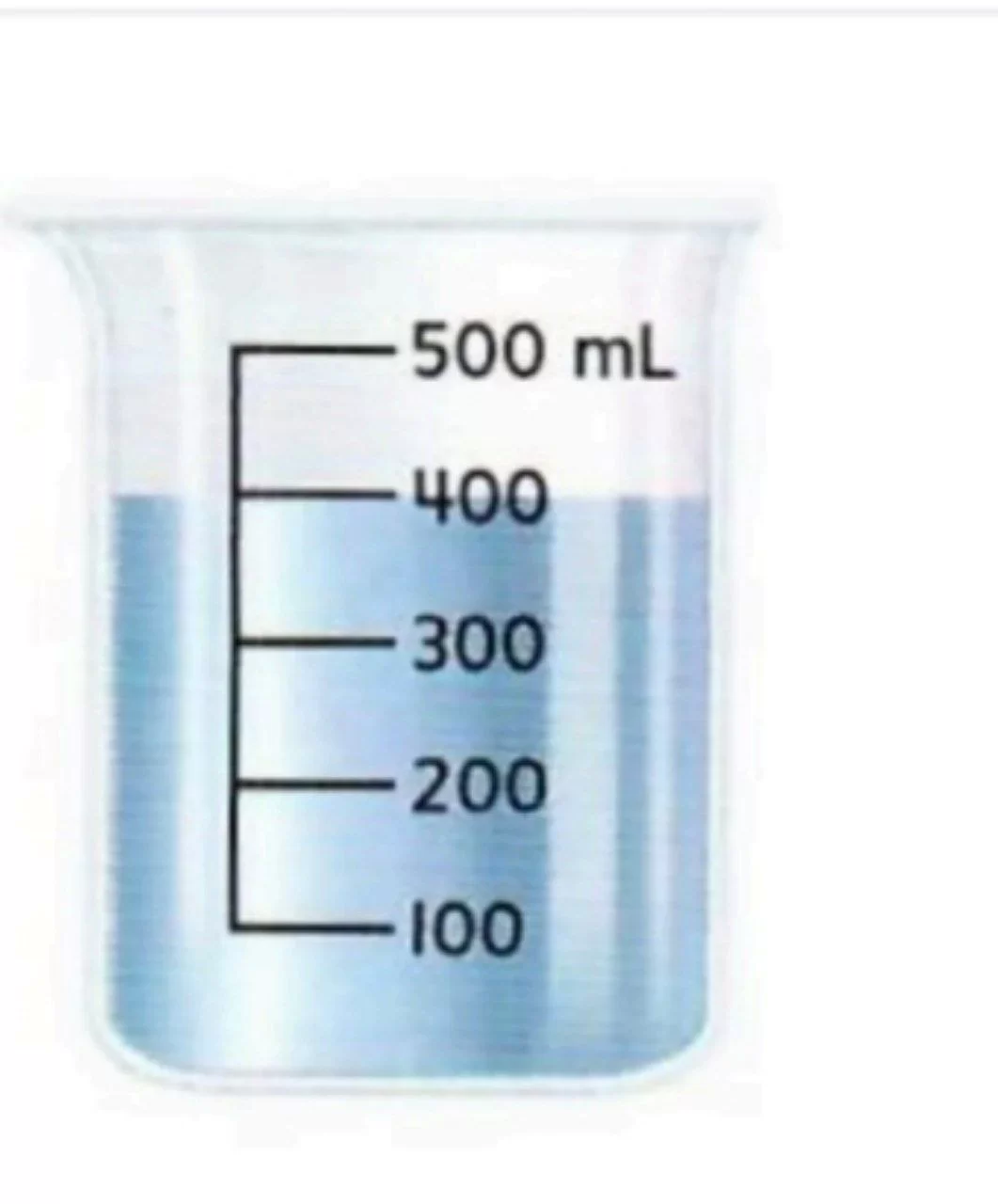 بالنظر إلى مستوى السائل في الوعاء المدرج، نجد أن سطح السائل يتوقف عند الخط الذي يشير إلى الرقم 400 مللتر.