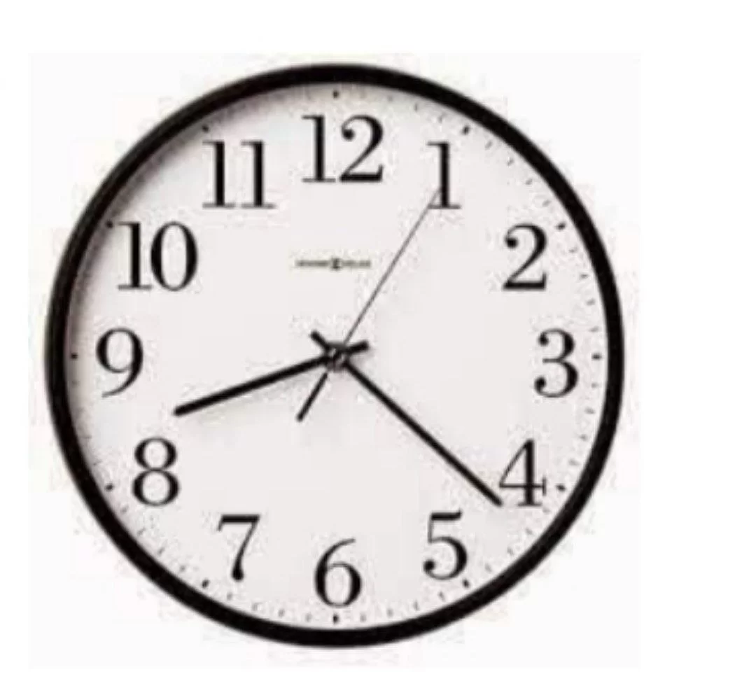 يظهر عقرب الساعات بعد الرقم 8 بقليل، وعقرب الدقائق يقع بعد علامة الرقم 4 (التي تمثل 20 دقيقة) بشرطتين، مما يعني أنه يشير إلى الدقيقة 22.