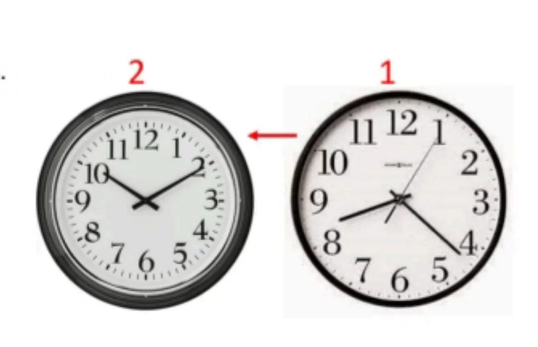 الوقت في الساعة الأولى هو 8:30 والوقت في الساعة الثانية هو 10:18. لحساب الفترة المنقضية: من 8:30 إلى 9:30 توجد 60 دقيقة، ومن 9:30 إلى 10:18 توجد 48 دقيقة. المجموع: \(60 + 48 = 108\) دقائق.