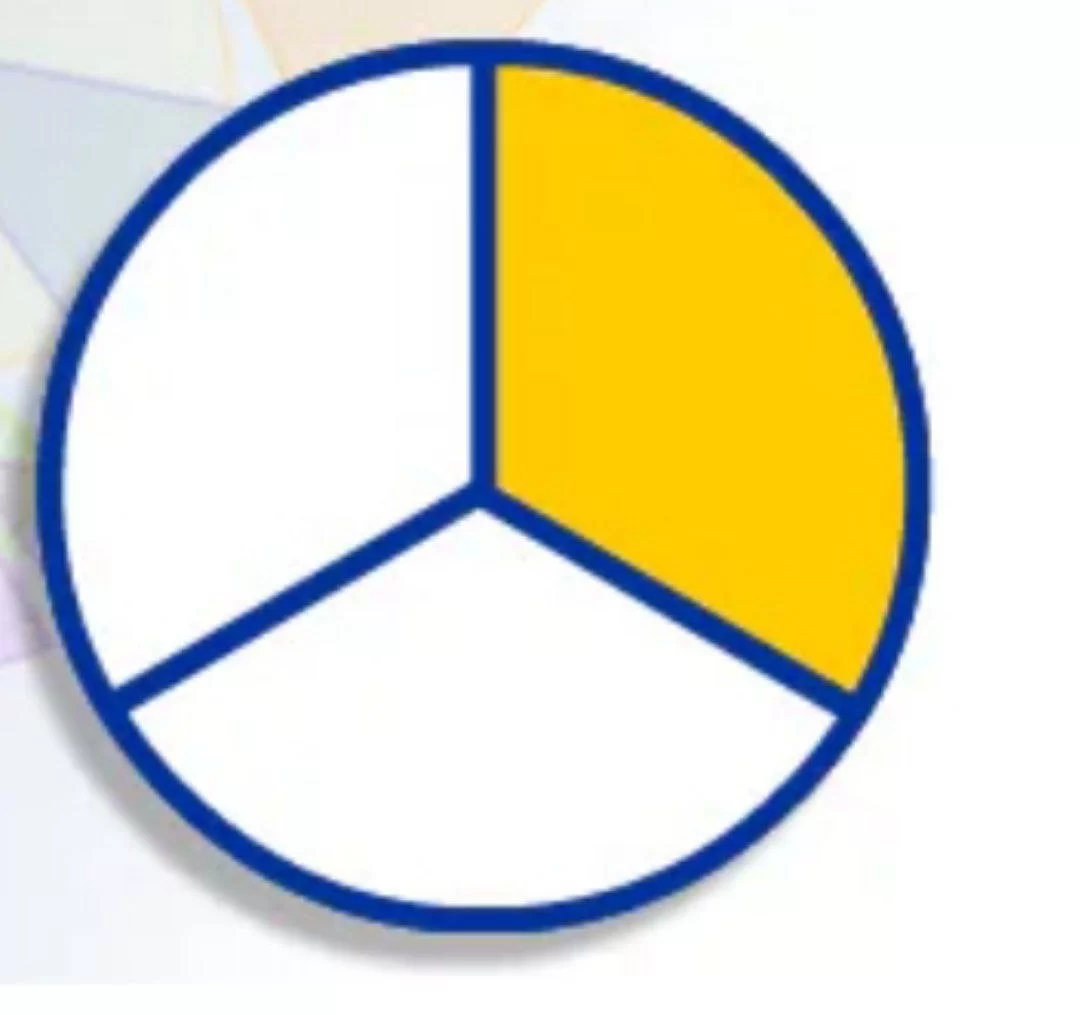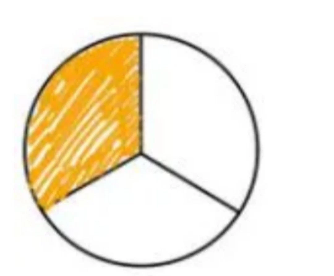 الدائرة مقسمة لثلاثة أجزاء متساوية والجزء المظلل يمثل واحداً منها.