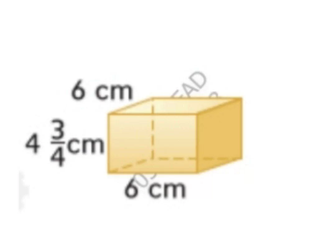 يتم حساب حجم المنشور المستطيل بضرب الطول في العرض في الارتفاع: \(6 \times 6 \times 4.75 = 171\).