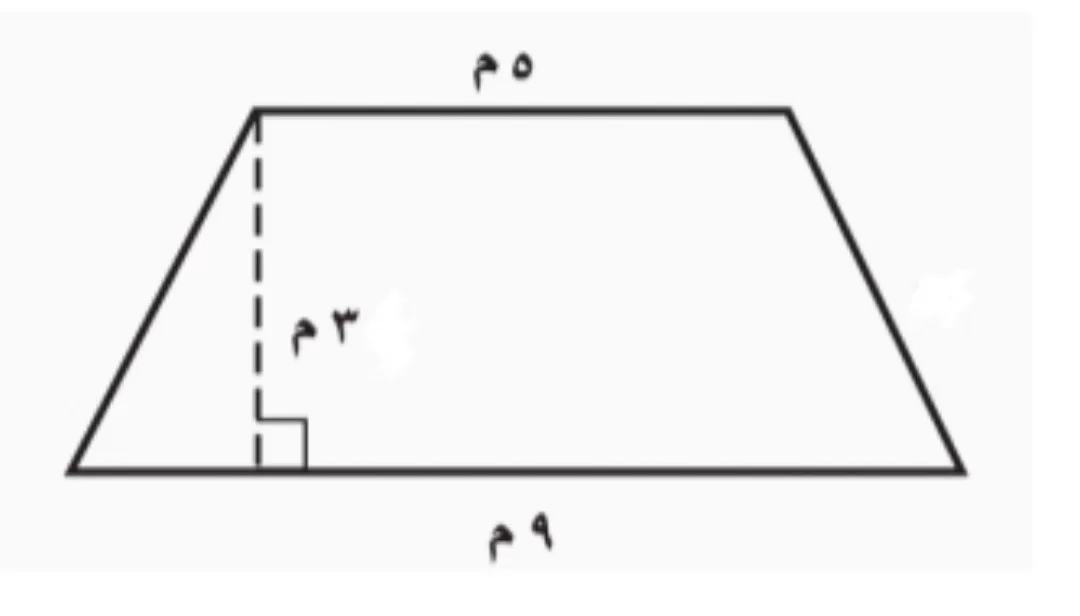 احسب مساحة شبه منحرف، قاعدته الصغرى 3 سم والكبرى 5 سم والارتفاع 3 سم.
