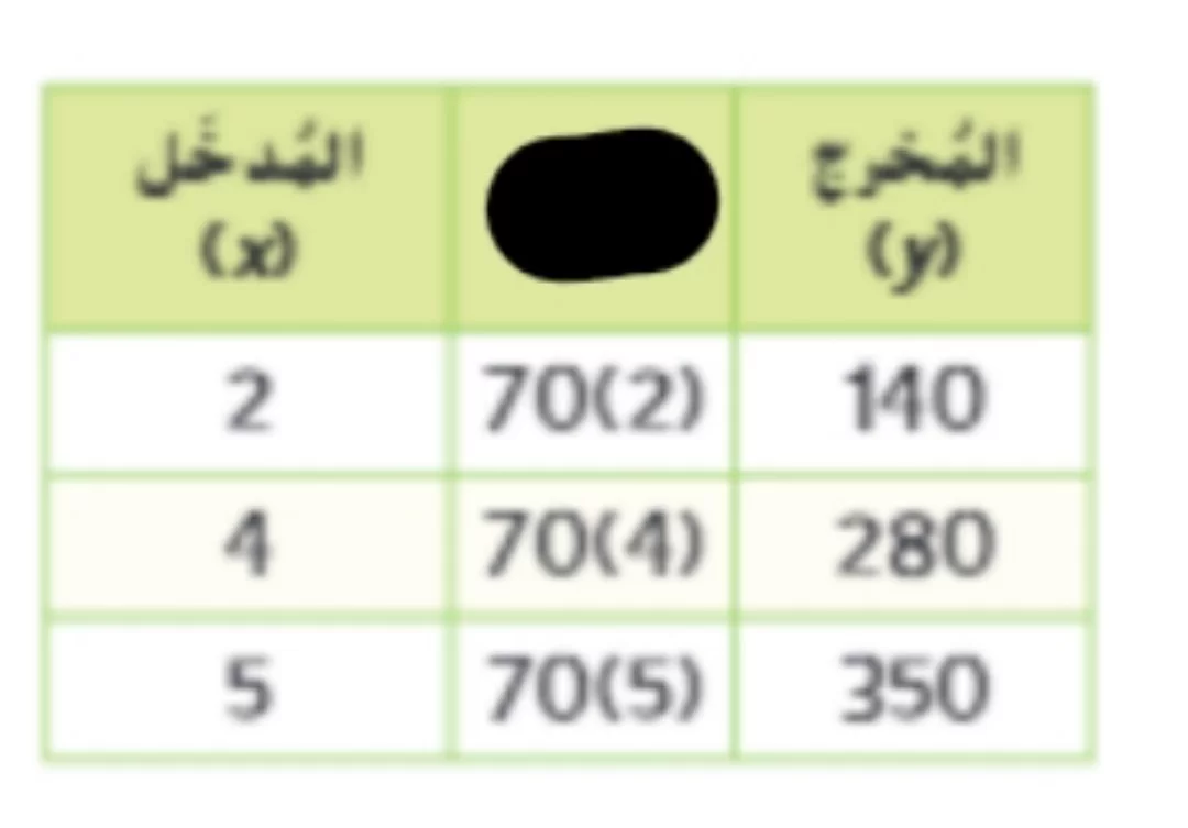 نلاحظ من خلال العمليات الموضحة في الجدول أن كل مخرج هو حاصل ضرب المدخل في 70 (2 × 70 = 140، 4 × 70 = 280، 5 × 70 = 350)، لذا القاعدة هي الضرب في 70.