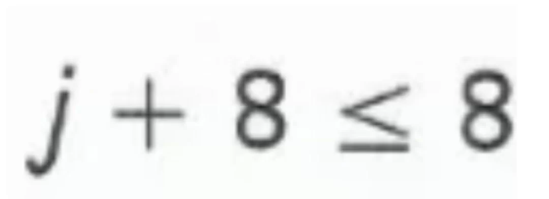 حددي العدد الذي يعد حلاً للمتباينة: \(j + 8 \leq 8\)