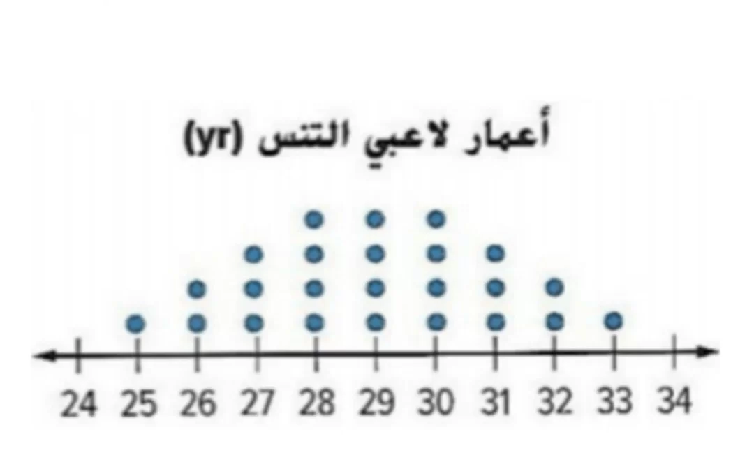 من خلال قراءة مخطط الصندوق، يمثل الطرف الأيسر للصندوق الربيع الأول (Q1) والطرف الأيمن يمثل الربيع الثالث (Q3). بالنظر إلى المخطط نجد أن Q1 يقع عند 22 و Q3 عند 34.