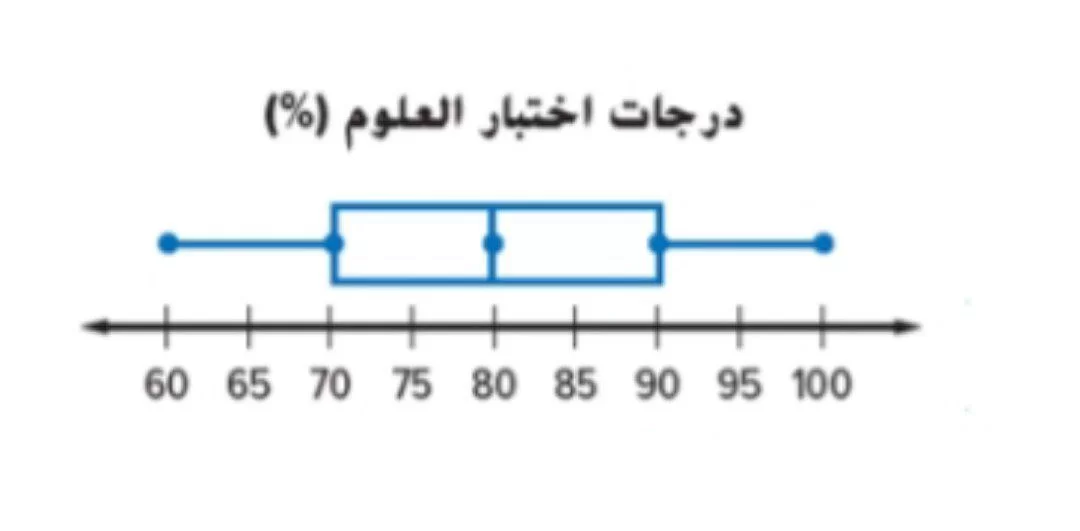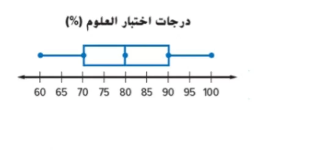 في مخطط الصندوق، الخط الرأسي الموجود داخل الصندوق يمثل قيمة الوسيط، وهو يشير هنا إلى القيمة 80.