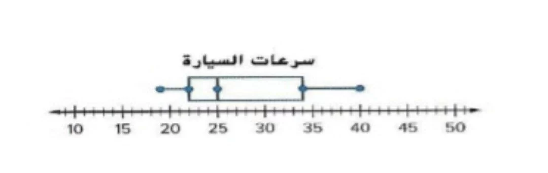 تمثل القيمة العظمى في مخطط الصندوق طرف العارض الأيمن، وهنا تنتهي البيانات عند القيمة 40.