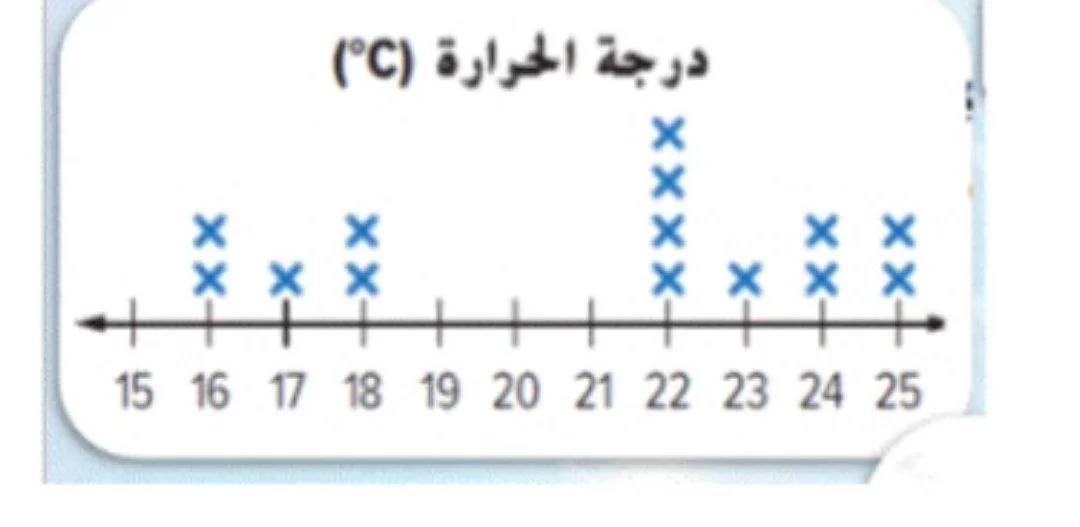 الرسم الذي يستخدم النقاط لتمثيل تكرار كل قيمة فوق خط الأعداد يسمى مخطط النقاط المجمعة.