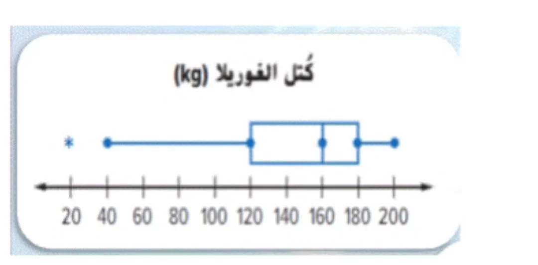 القيمة المتطرفة هي القيمة المنعزلة والبعيدة عن بقية البيانات، وتظهر في الرسم كنقطة وحيدة عند القيمة 20.