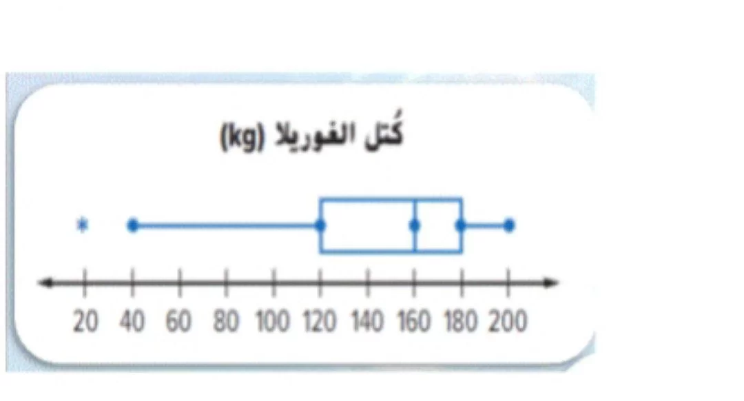 في المخطط المعروض لكتل الغوريلا، نلاحظ أن الخط الفاصل داخل الصندوق يقع عند القيمة 160، وهو يمثل الوسيط.