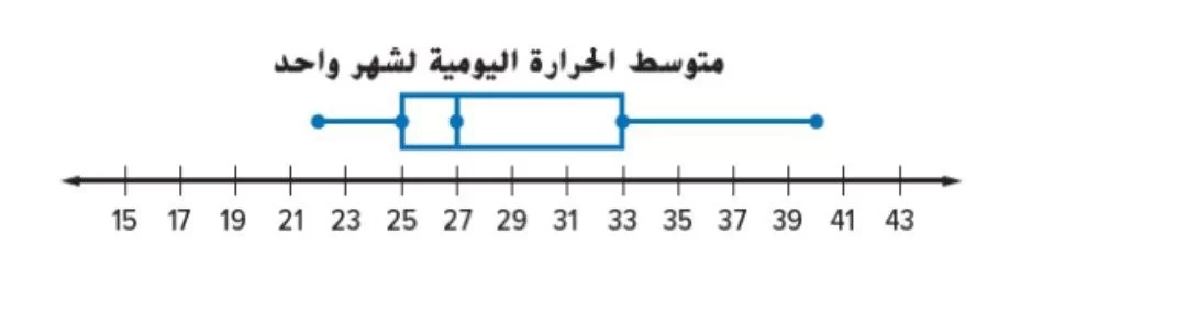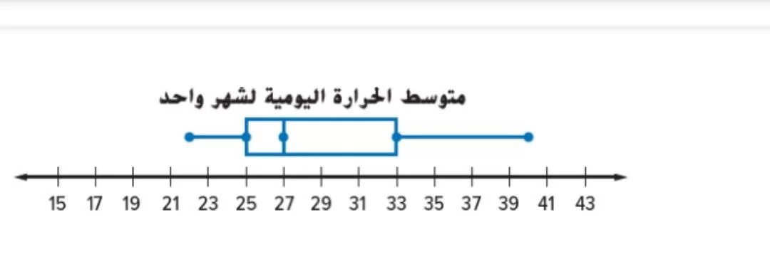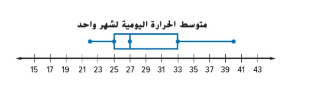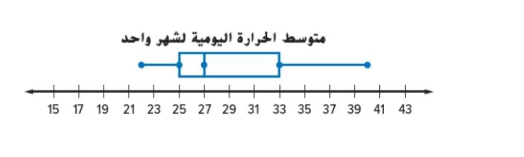 الربيع الثالث هو القيمة التي ينتهي عندها الصندوق من جهة اليمين، وفي هذا المخطط تقابل القيمة 33.