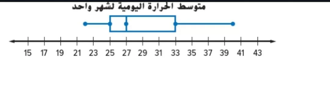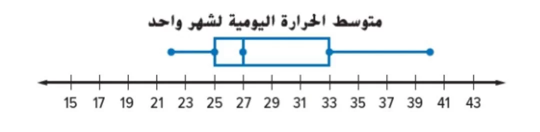 المدى الربعي هو الفرق بين الربيع الثالث والربيع الأول، أي: \(33 - 25 = 8\).