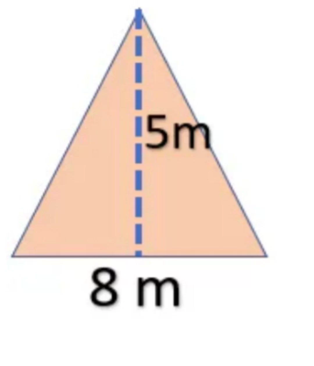 مساحة المثلث تساوي نصف طول القاعدة في الارتفاع. بتطبيق القانون على الشكل: \(\frac{1}{2} \times 8 \times 5 = 20 m^2\).