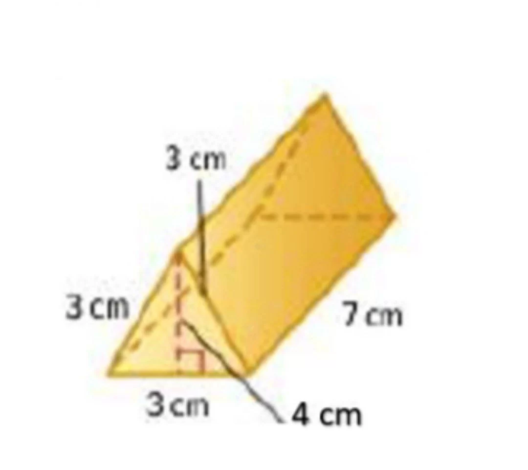 مساحة سطح المنشور الثلاثي في الشكل المجاور تساوي: