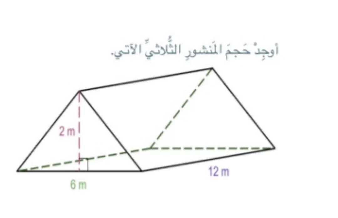 أوجد حجم المنشور الثلاثي الآتي.