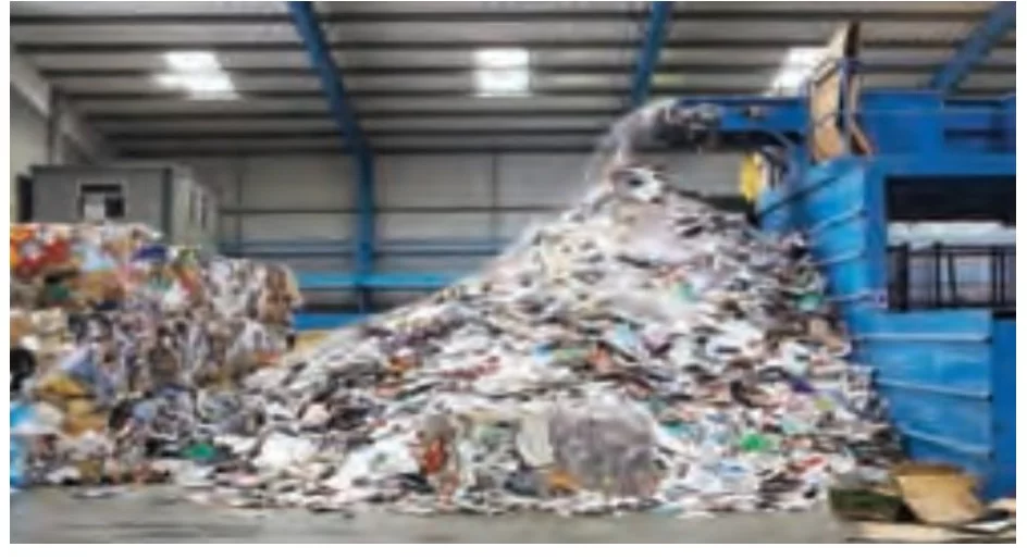 الصورة تظهر عملية تجميع وفرز النفايات بغرض إعادة تدويرها وتحويلها إلى منتجات جديدة لتقليل التلوث.
