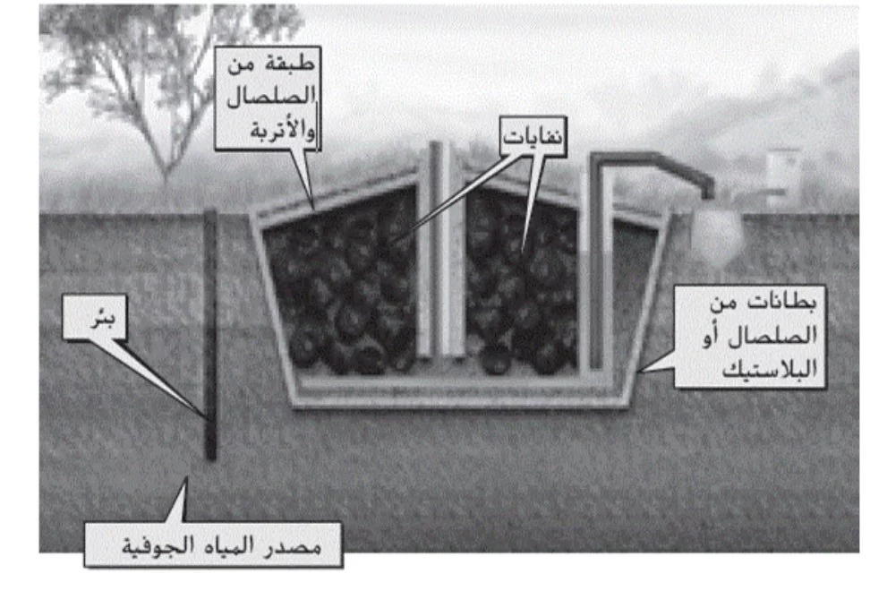 ما وظيفة البئر في الشكل المرفق الخاص بمكب النفايات؟