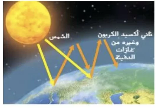 تراكم الغازات الدفيئة يمنع هروب الحرارة للفضاء، مما يؤدي لرفع حرارة الغلاف الجوي السفلي.