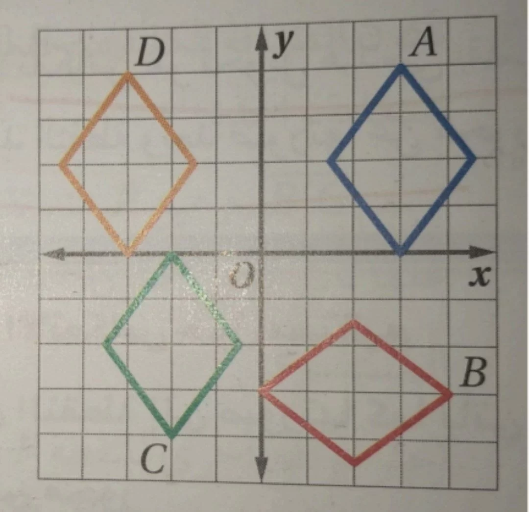 التحويل الهندسي المناسب لوصف الشكل من A إلى الشكل D هو: