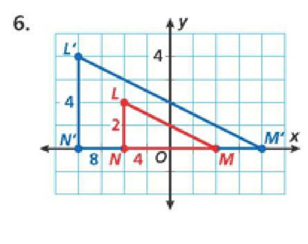 لإيجاد صورة النقطة تحت تأثير تمدد، نضرب إحداثياتها في معامل التمدد: \( 8 \times \frac{1}{2} = 4 \) و \( 0 \times \frac{1}{2} = 0 \)، فتكون الصورة هي \( (4, 0) \).