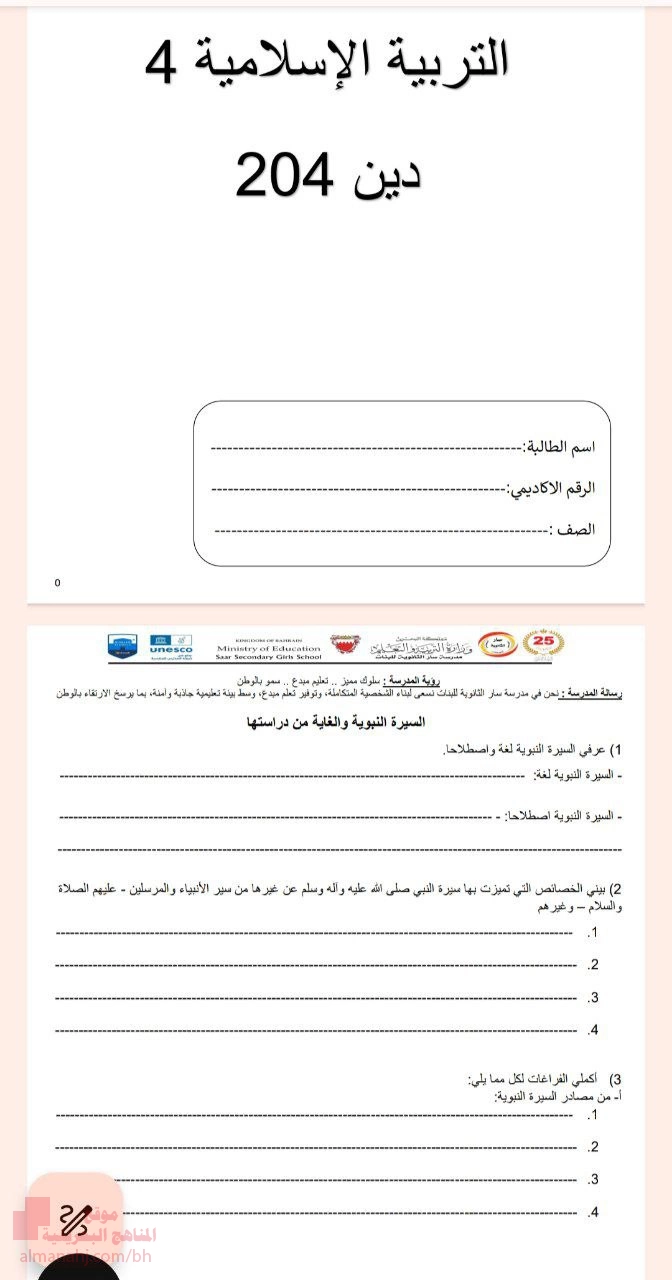 تنويه: المناهج البحرينية هو موقع مجاني وغير رسمي ولا يتطلب اشتراك لتحميل الملفات، لذلك يرجى عدم دفع أي مبلغ أو الاشتراك من أجل تحميل الملفات.