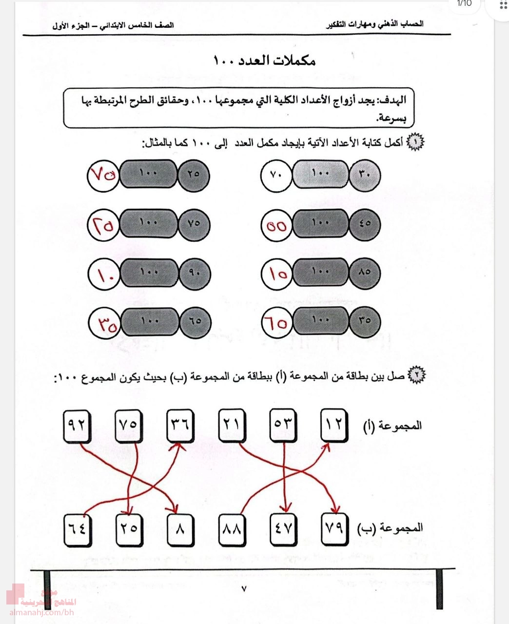 تم إيجاد الملف: إجابة كراسة لحساب الذهني